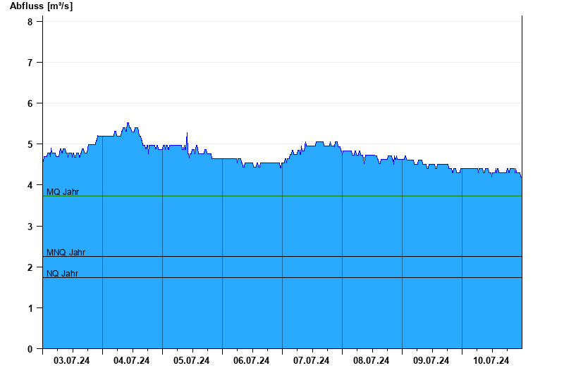 - Mittlerer Niedrigwasserabfluss MNQ 2,25 m³/s