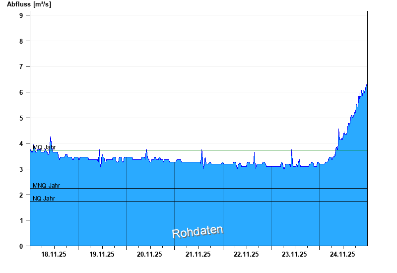 - Mittlerer Niedrigwasserabfluss MNQ 2,25 m³/s
