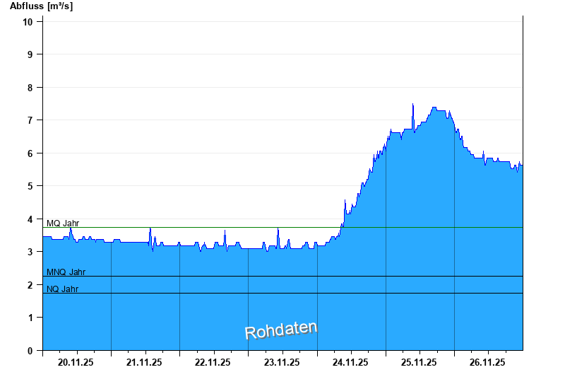 - Mittlerer Niedrigwasserabfluss MNQ 2,25 m³/s