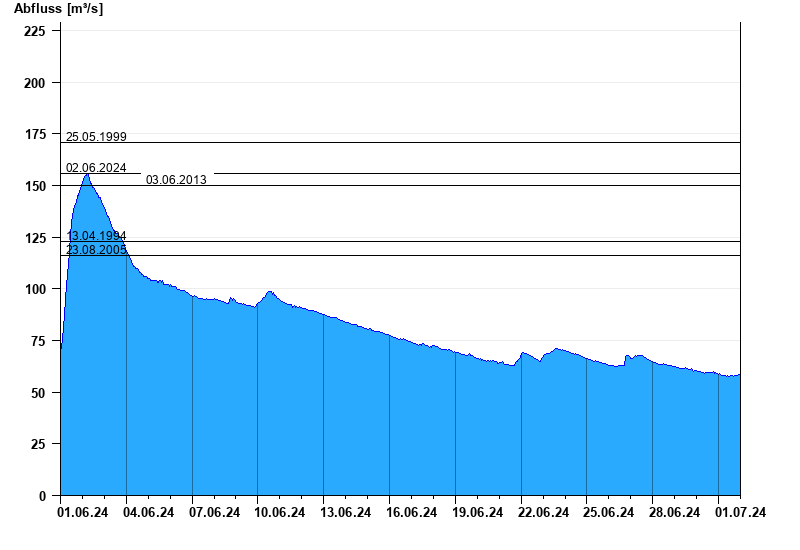 - 02.06.2024 Abfluss: 156 m³/s