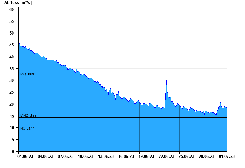 - Mittlerer Niedrigwasserabfluss MNQ 14,3 m³/s