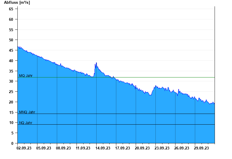- Mittlerer Niedrigwasserabfluss MNQ 14,3 m³/s