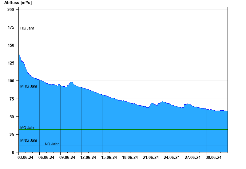 - Mittlerer Niedrigwasserabfluss MNQ 14,3 m³/s