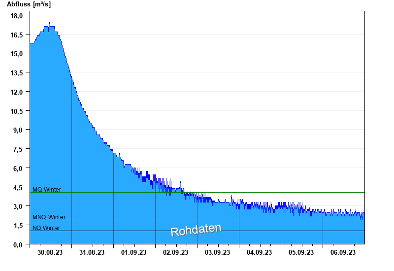 - Mittlerer Niedrigwasserabfluss MNQ 1,9 m³/s