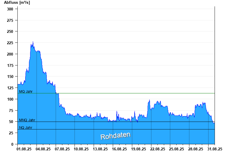 - Mittlerer Niedrigwasserabfluss MNQ 49,6 m³/s