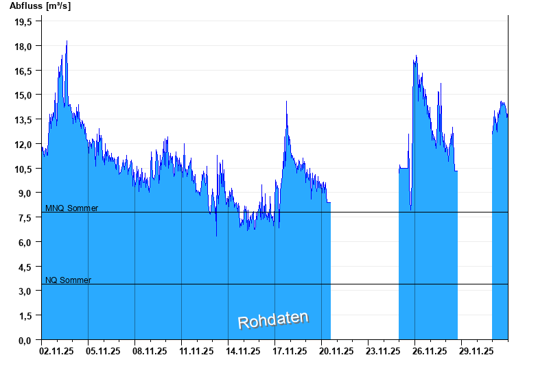 - Mittlerer Niedrigwasserabfluss MNQ 7,8 m³/s