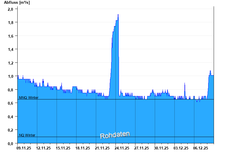- Mittlerer Niedrigwasserabfluss MNQ 0,654 m³/s