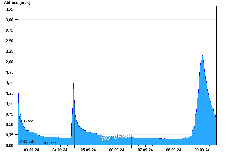 - Mittlerer Niedrigwasserabfluss MNQ 0,052 m³/s