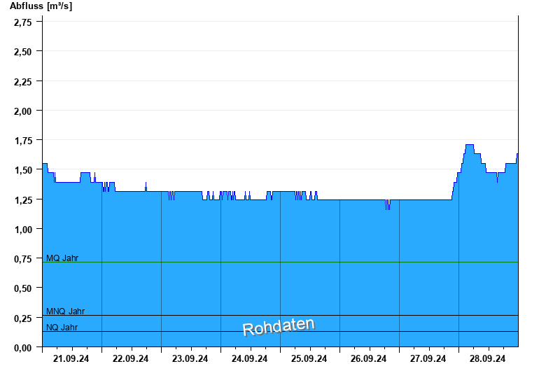 - Mittlerer Niedrigwasserabfluss MNQ 0,267 m³/s