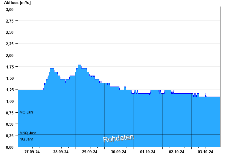 - Mittlerer Niedrigwasserabfluss MNQ 0,267 m³/s