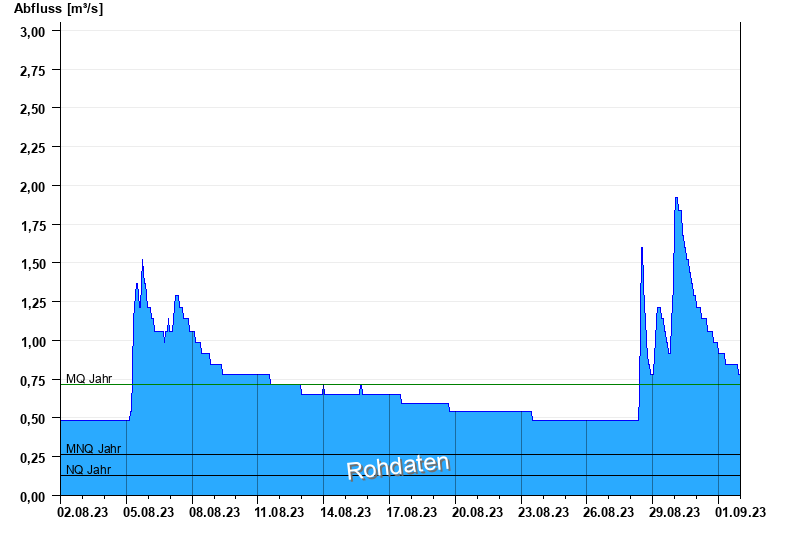 - Mittlerer Niedrigwasserabfluss MNQ 0,267 m³/s