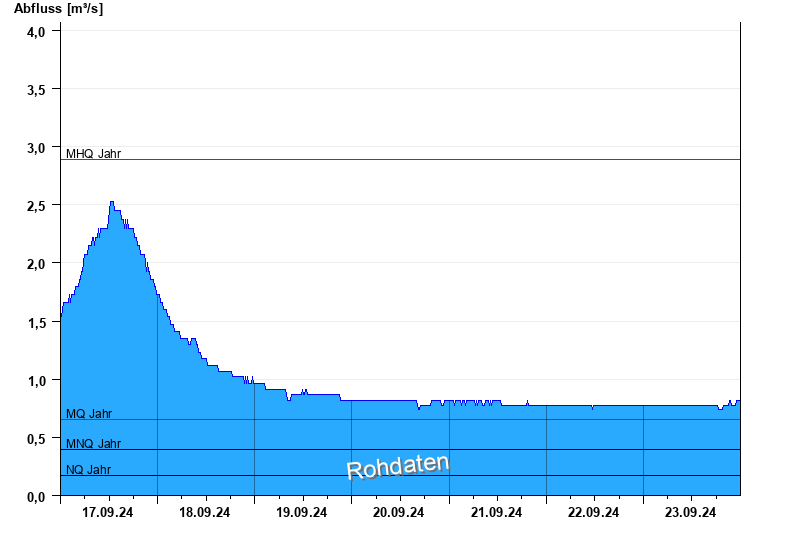- Mittlerer Niedrigwasserabfluss MNQ 0,399 m³/s