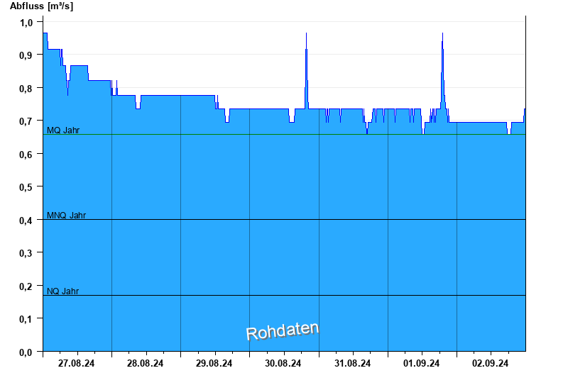 - Mittlerer Niedrigwasserabfluss MNQ 0,399 m³/s
