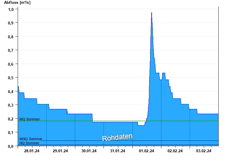 - Mittlerer Niedrigwasserabfluss MNQ 0,038 m³/s