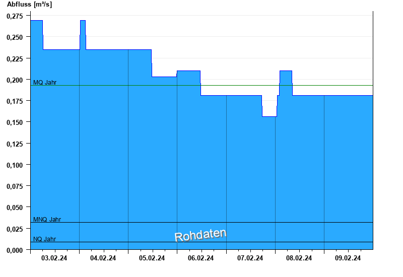 - Mittlerer Niedrigwasserabfluss MNQ 0,032 m³/s