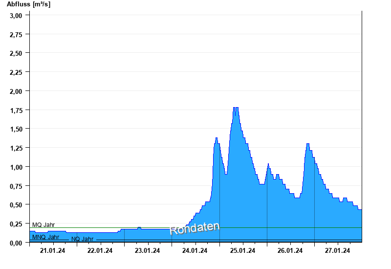 - Mittlerer Niedrigwasserabfluss MNQ 0,032 m³/s