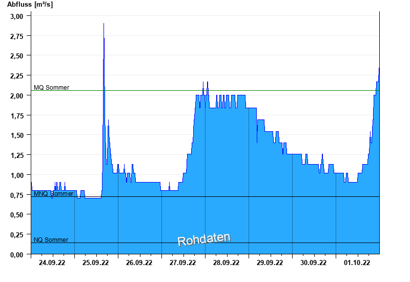 - Mittlerer Niedrigwasserabfluss MNQ 0,722 m³/s