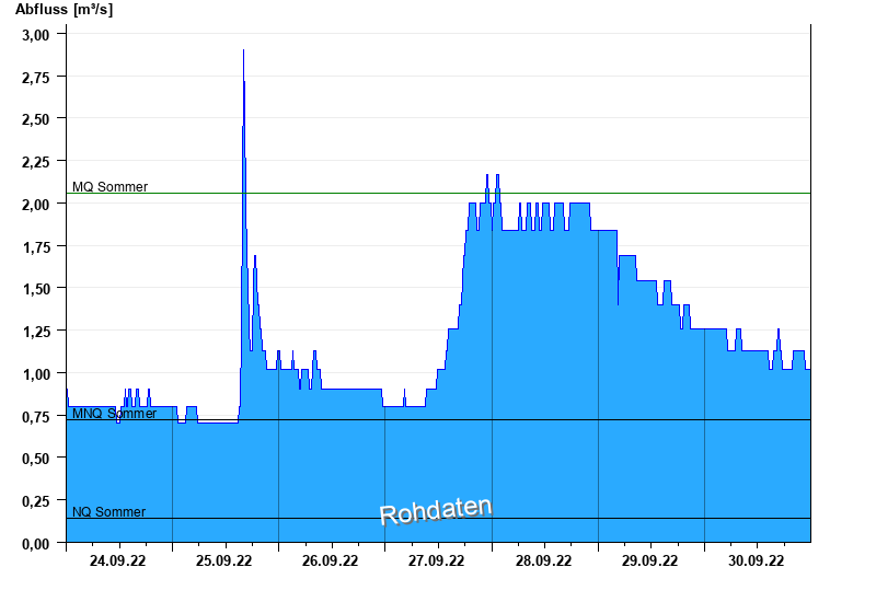 - Mittlerer Niedrigwasserabfluss MNQ 0,722 m³/s