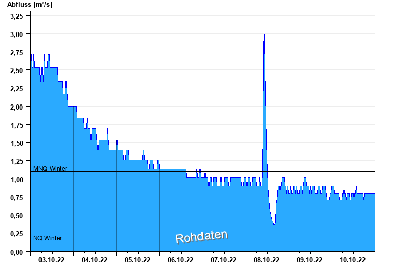- Mittlerer Niedrigwasserabfluss MNQ 1,1 m³/s