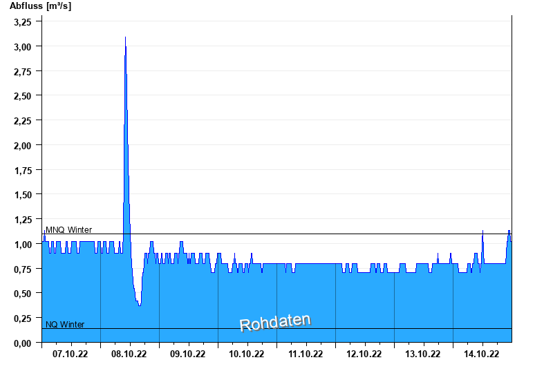 - Mittlerer Niedrigwasserabfluss MNQ 1,1 m³/s
