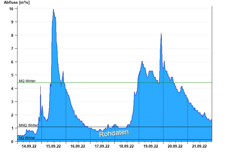 - Mittlerer Niedrigwasserabfluss MNQ 1,1 m³/s