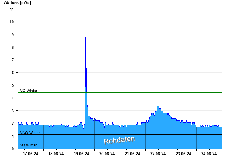 - Mittlerer Niedrigwasserabfluss MNQ 1,1 m³/s