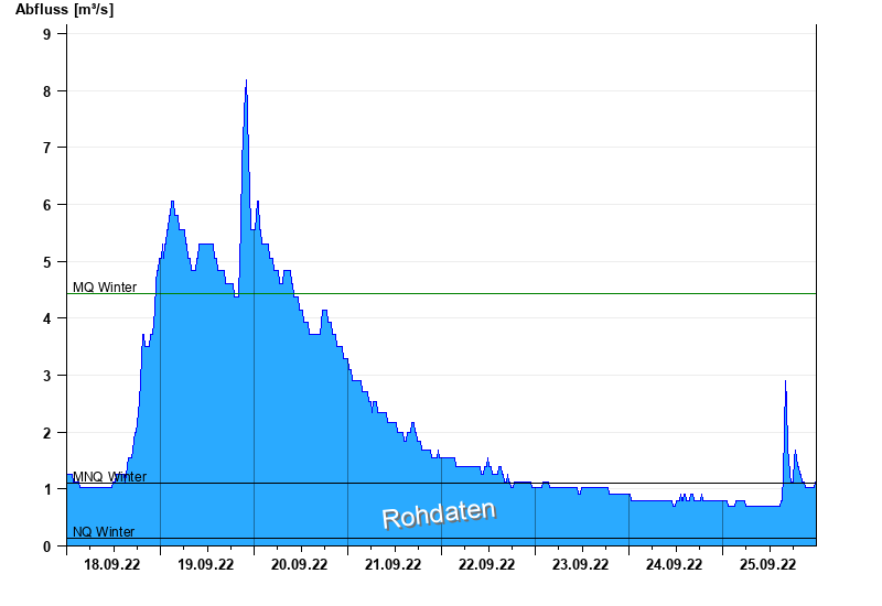 - Mittlerer Niedrigwasserabfluss MNQ 1,1 m³/s
