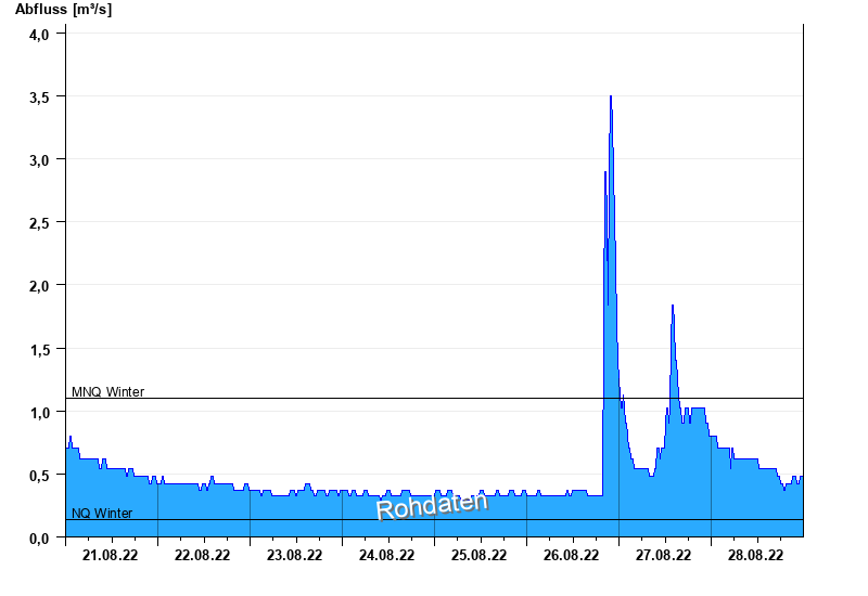 - Mittlerer Niedrigwasserabfluss MNQ 1,1 m³/s