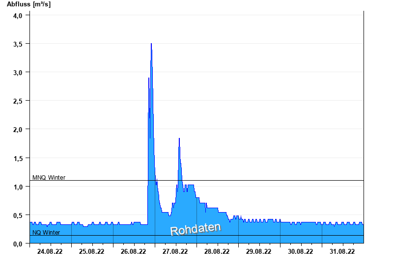 - Mittlerer Niedrigwasserabfluss MNQ 1,1 m³/s