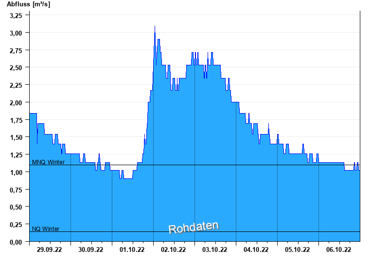 - Mittlerer Niedrigwasserabfluss MNQ 1,1 m³/s