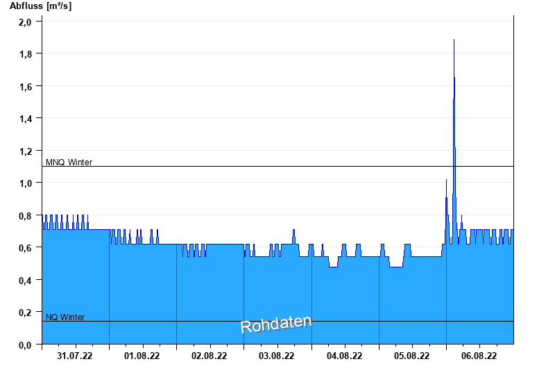 - Mittlerer Niedrigwasserabfluss MNQ 1,1 m³/s