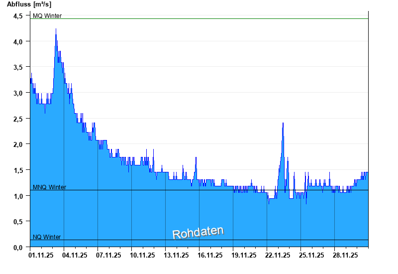 - Mittlerer Niedrigwasserabfluss MNQ 1,1 m³/s