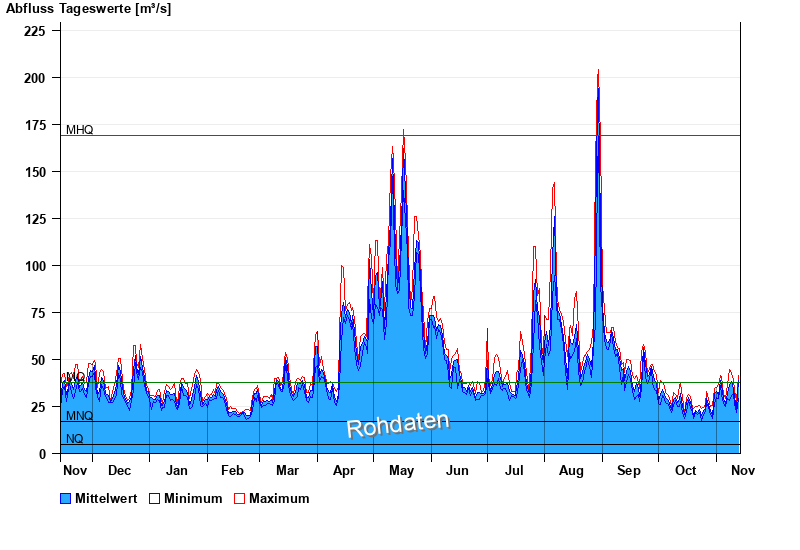 - Mittlerer Niedrigwasserabfluss MNQ 17 m³/s