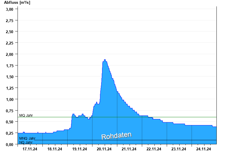 - Mittlerer Niedrigwasserabfluss MNQ 0,09 m³/s
