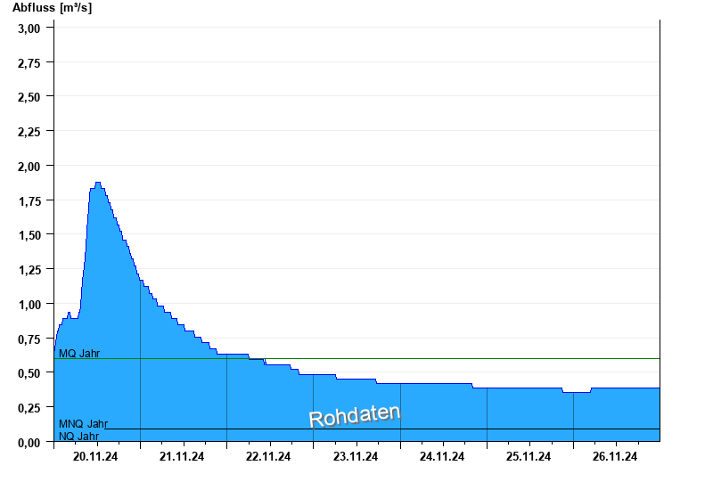 - Mittlerer Niedrigwasserabfluss MNQ 0,09 m³/s