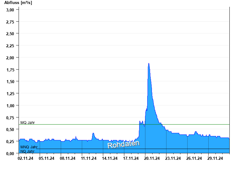 - Mittlerer Niedrigwasserabfluss MNQ 0,09 m³/s