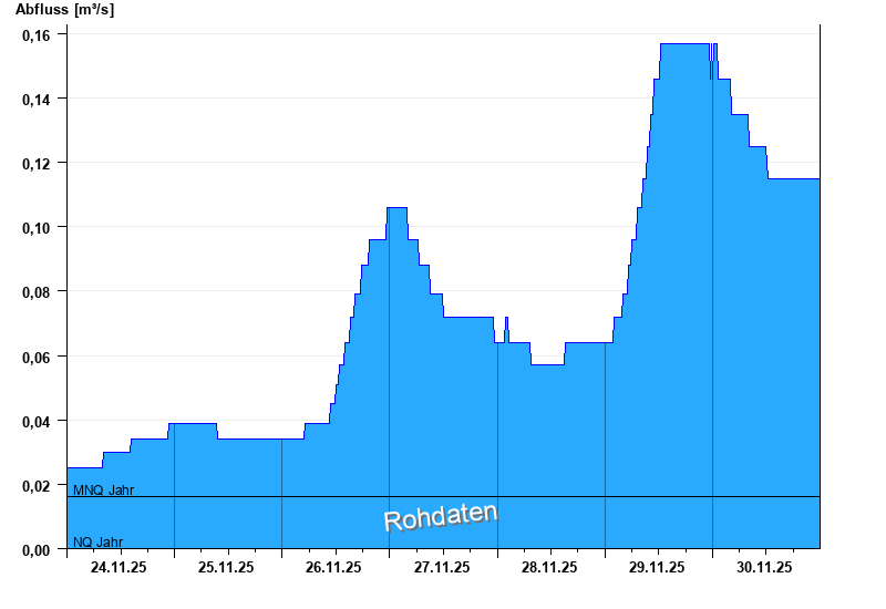 - Mittlerer Niedrigwasserabfluss MNQ 0,016 m³/s