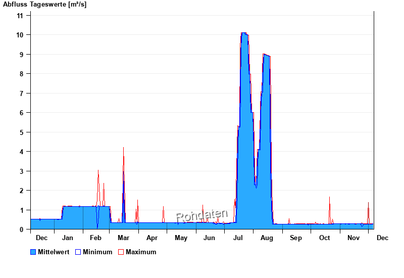 | Date | Mean value [m³/s] | Maximum [m³/s] | Minimum [m³/s] |
