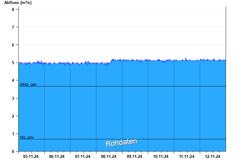 Der Pegel wird durch Baumaßnahmen unterhalb beeinflusst (Rückstau). Entsprechend sind die Abflusswerte nicht korrekt
