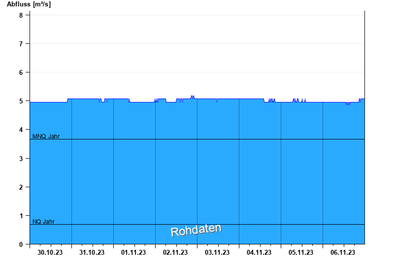 Der Pegel wird durch Baumaßnahmen unterhalb beeinflusst (Rückstau). Entsprechend sind die Abflusswerte nicht korrekt