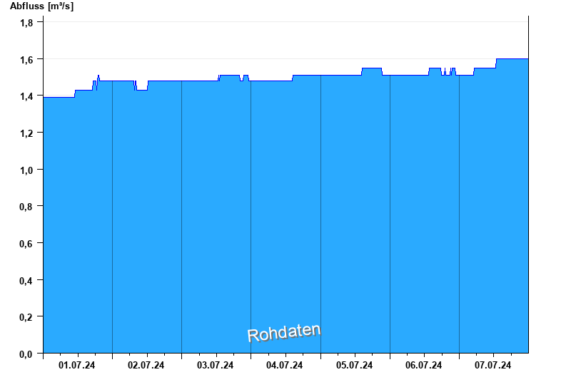 Der Pegel wird durch Baumaßnahmen unterhalb beeinflusst (Rückstau). Entsprechend sind die Abflusswerte nicht korrekt