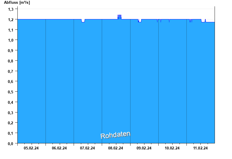 Der Pegel wird durch Baumaßnahmen unterhalb beeinflusst (Rückstau). Entsprechend sind die Abflusswerte nicht korrekt