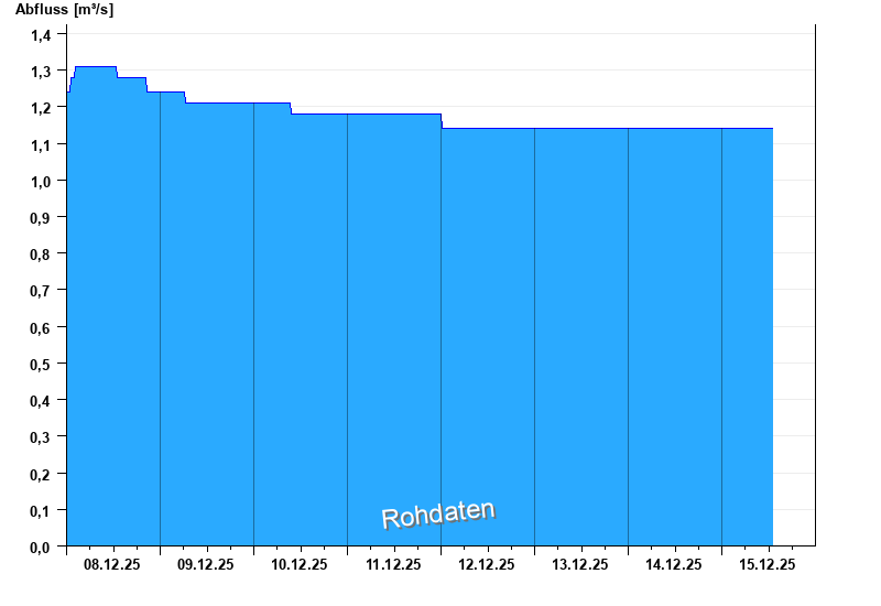 Der Pegel wird durch Baumaßnahmen unterhalb beeinflusst (Rückstau). Entsprechend sind die Abflusswerte nicht korrekt