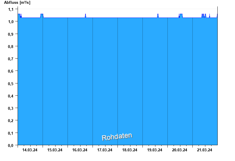 Der Pegel wird durch Baumaßnahmen unterhalb beeinflusst (Rückstau). Entsprechend sind die Abflusswerte nicht korrekt