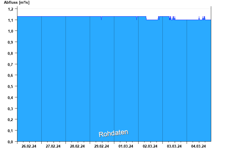 Der Pegel wird durch Baumaßnahmen unterhalb beeinflusst (Rückstau). Entsprechend sind die Abflusswerte nicht korrekt