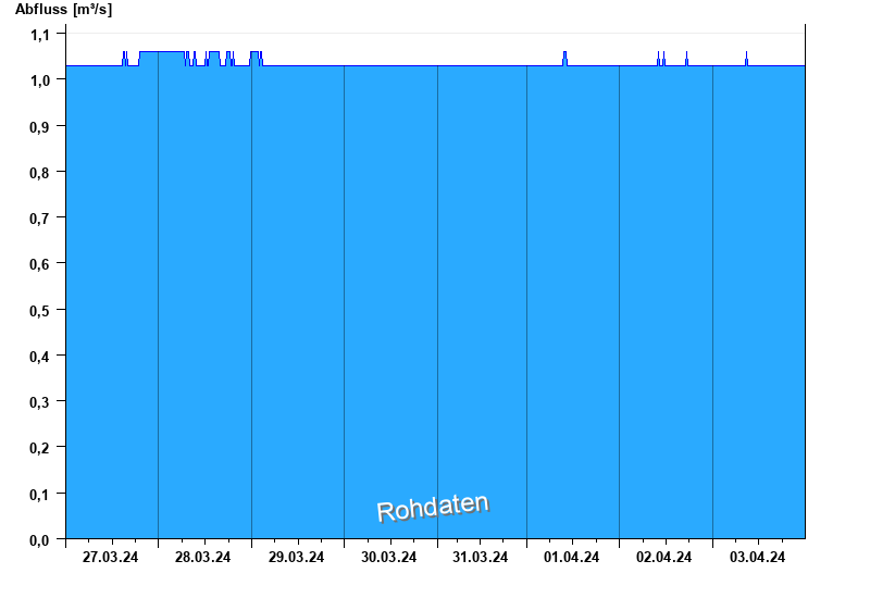 Der Pegel wird durch Baumaßnahmen unterhalb beeinflusst (Rückstau). Entsprechend sind die Abflusswerte nicht korrekt