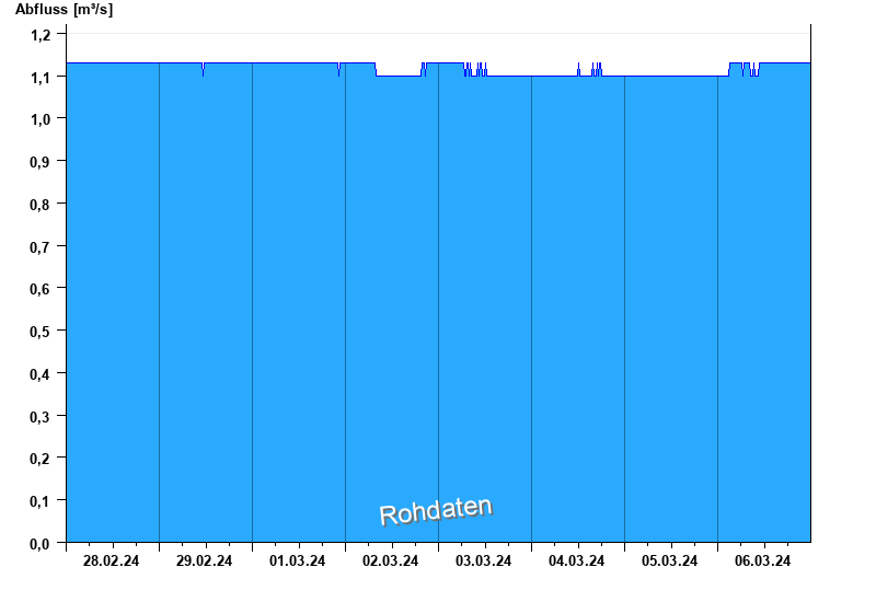 Der Pegel wird durch Baumaßnahmen unterhalb beeinflusst (Rückstau). Entsprechend sind die Abflusswerte nicht korrekt