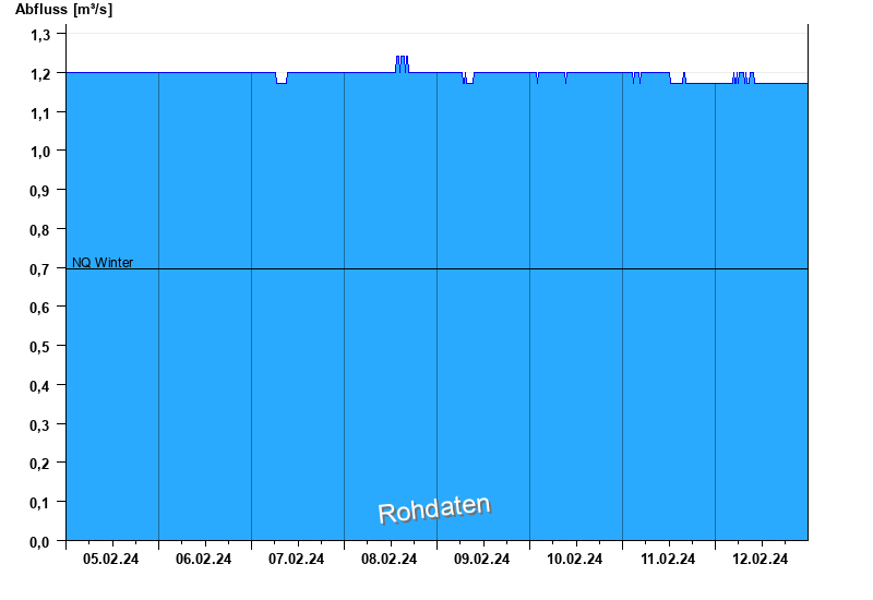 Der Pegel wird durch Baumaßnahmen unterhalb beeinflusst (Rückstau). Entsprechend sind die Abflusswerte nicht korrekt