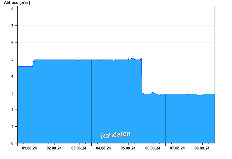Der Pegel wird durch Baumaßnahmen unterhalb beeinflusst (Rückstau). Entsprechend sind die Abflusswerte nicht korrekt