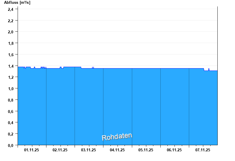 Der Pegel wird durch Baumaßnahmen unterhalb beeinflusst (Rückstau). Entsprechend sind die Abflusswerte nicht korrekt